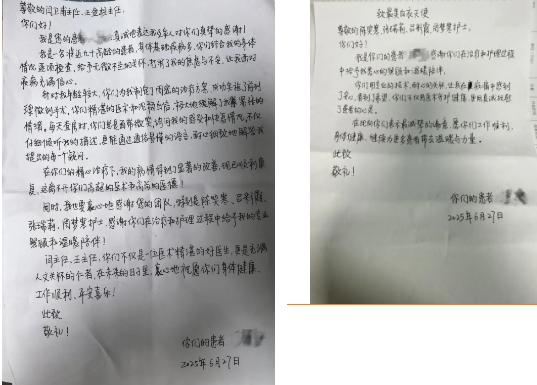 在漯河醫(yī)專二附院泌尿-肛腸外科全體醫(yī)護(hù)人員的精心治療和悉心照料下,患者術(shù)后恢復(fù)良好,順利出院。出院之際,患者特意寫下兩張感謝信,分別贈(zèng)予閆衛(wèi)甫主任團(tuán)隊(duì)和護(hù)理團(tuán)隊(duì)。信中,老人深情地寫道:“你們用專業(yè)的技術(shù),耐心的關(guān)懷,讓我再在病痛中感到了安心,看到了希望,你們不僅用醫(yī)術(shù)守護(hù)健康,更用真誠(chéng)撫慰了患者的心靈。”(盧闖 田向榮 劉旭 袁錦鈺)