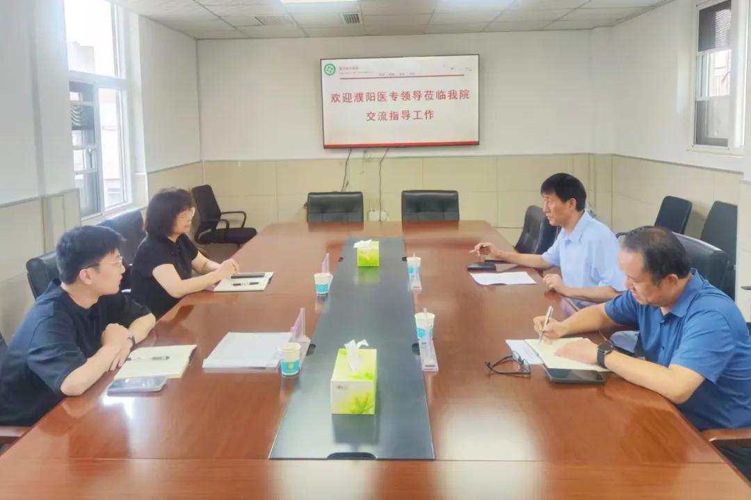 7月10日,濮陽(yáng)醫(yī)學(xué)高等??茖W(xué)校中醫(yī)學(xué)院院長(zhǎng)張琰、教研室主任齊魯鋒蒞臨漯河市中醫(yī)院,就教學(xué)醫(yī)院合作的相關(guān)事宜展開交流座談。漯河市中醫(yī)院黨委副書記、副院長(zhǎng)張文吉、醫(yī)務(wù)科科長(zhǎng)常新勇參加此次座談。