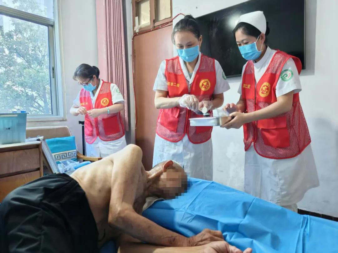 7月10日,市二院急診科接到一位家住臨潁,90多歲高齡患者家屬的求助電話,老人因帶狀皰疹疼痛、瘙癢引起眩暈,行動不便,無法前往醫(yī)院就診。院黨委了解情況后高度重視,立即安排全國先進工作者、全國“五一”勞動獎?wù)芦@得者、中醫(yī)針灸科主任朱青霞,帶領(lǐng)護士長安虹、副主任康復(fù)師陳莉上門為患者診治。