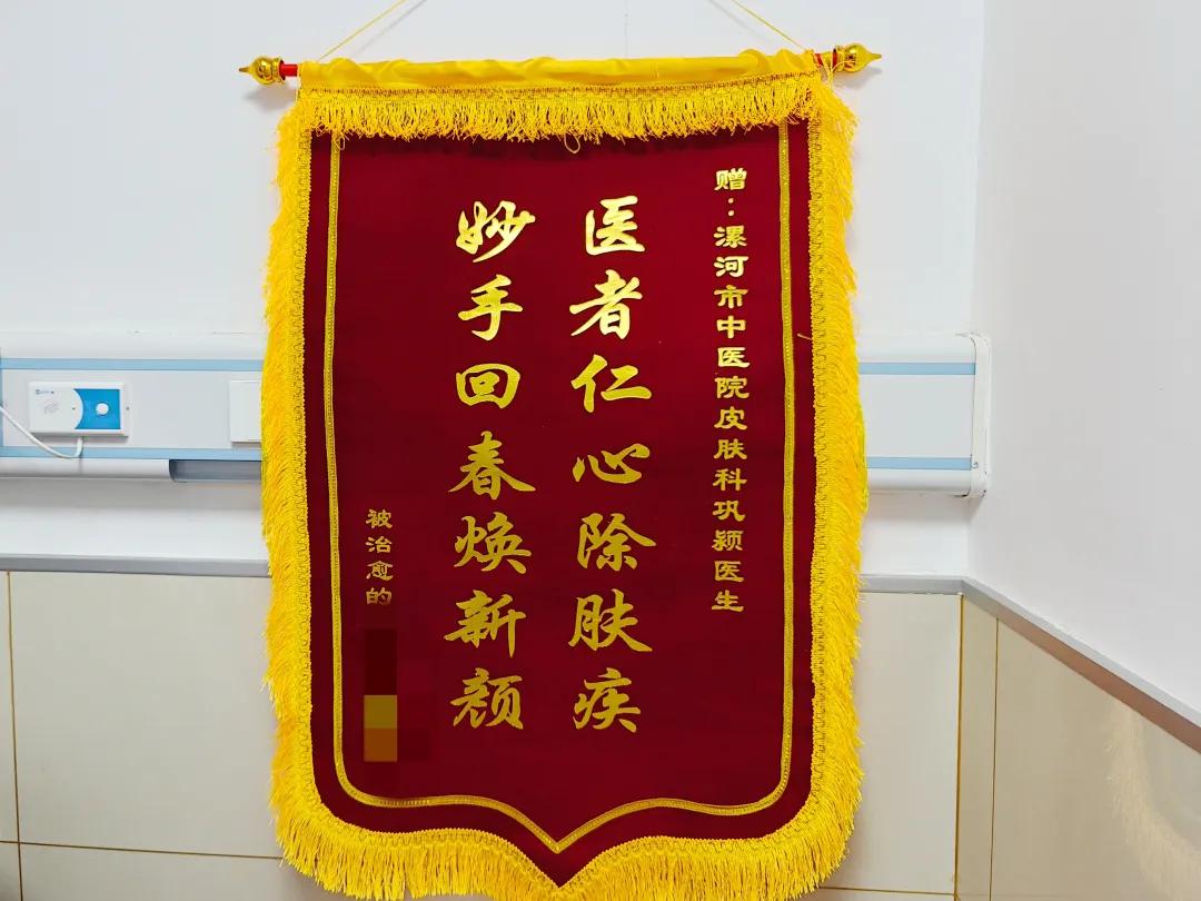 近日,漯河市中醫(yī)院皮膚科鞏潁醫(yī)生收到病人感謝的錦旗,上面寫著“醫(yī)者仁心除膚疾,妙手回春煥新顏”,短短文字表達(dá)對(duì)醫(yī)生醫(yī)術(shù)的認(rèn)可與自己頭發(fā)重新生長的喜悅。