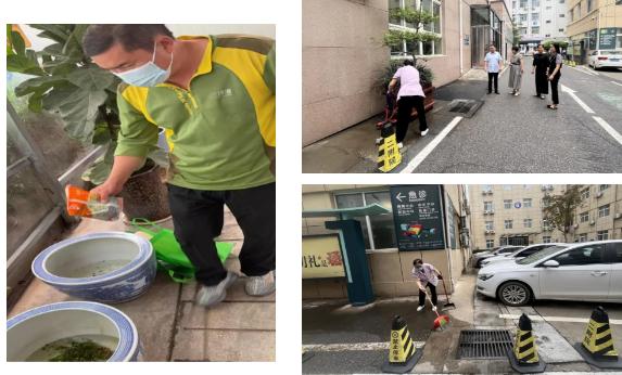 對發(fā)現(xiàn)和存在的隱患問題,醫(yī)院迅速開展行動,啟動系統(tǒng)化的外圍環(huán)境清積水專項行動??倓?wù)科牽頭部署保潔團隊嚴格按照網(wǎng)格化分工,深度清潔垃圾桶周邊的頑固積水污漬,同步清空空調(diào)外機接水盤蓄水,及時清理各類殘留積水,確保每一處積水隱患點進行清除。