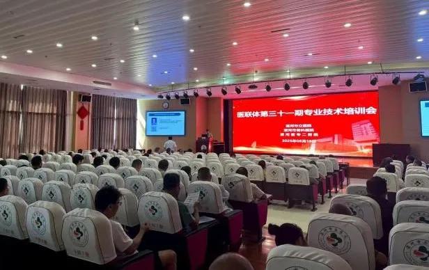 為加快構建優(yōu)質高效的醫(yī)療衛(wèi)生服務體系,提升基層醫(yī)療衛(wèi)生機構服務能力,加強醫(yī)聯(lián)體成員間的技術交流與合作,8月16日,漯河醫(yī)專二附院(漯河市骨科醫(yī)院、漯河市立醫(yī)院)舉辦第三十一期醫(yī)聯(lián)體專業(yè)技術培訓會,來自召陵區(qū)、郾城區(qū)、源匯區(qū)、開發(fā)區(qū)醫(yī)聯(lián)體成員單位的150名醫(yī)務人員參加培訓。培訓會由社會工作部主任韓書環(huán)主持。