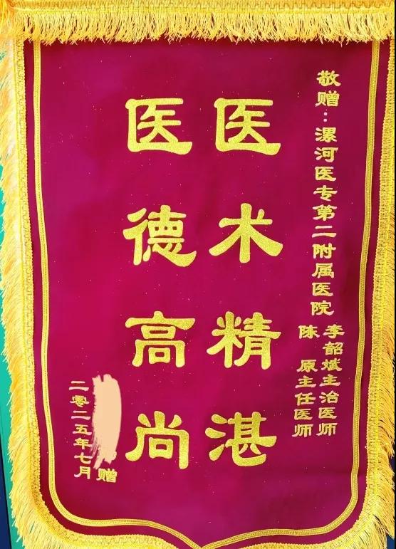 后來患者通過網絡自媒體健康科普視頻,慕名找到漯河醫(yī)專二附院普通外科陳原主任咨詢。陳原主任的細致講解得到了患者的認可,住院次日便在超聲引導下完成大隱靜脈射頻消融手術,術后當天下床活動沒有明顯痛感,術后2天就出院回家了。出院半月后專程送來錦旗表示感謝。