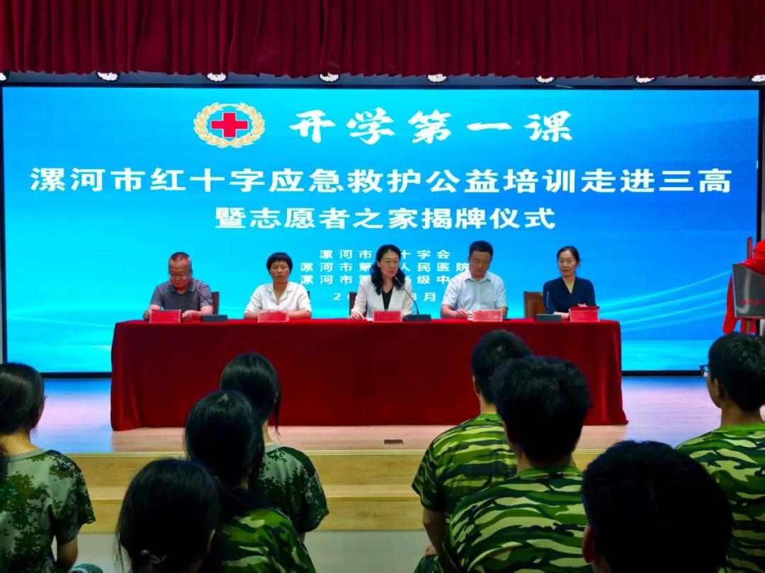 8月21日上午,漯河市紅十字應(yīng)急救護(hù)公益培訓(xùn)進(jìn)校園暨志愿者之家揭牌儀式在市第三高級中學(xué)舉行,市紅十字會黨組書記、常務(wù)副會長孫潁華,市教育局黨組成員、副局長郭俊偉,市二院黨委副書記、院長胡海英,市紅十字會黨組成員、副會長李世杰,市二院紅十字志愿服務(wù)隊代表、漯河三高紅十字應(yīng)急救護(hù)社團(tuán)師生代表等參加本次活動。