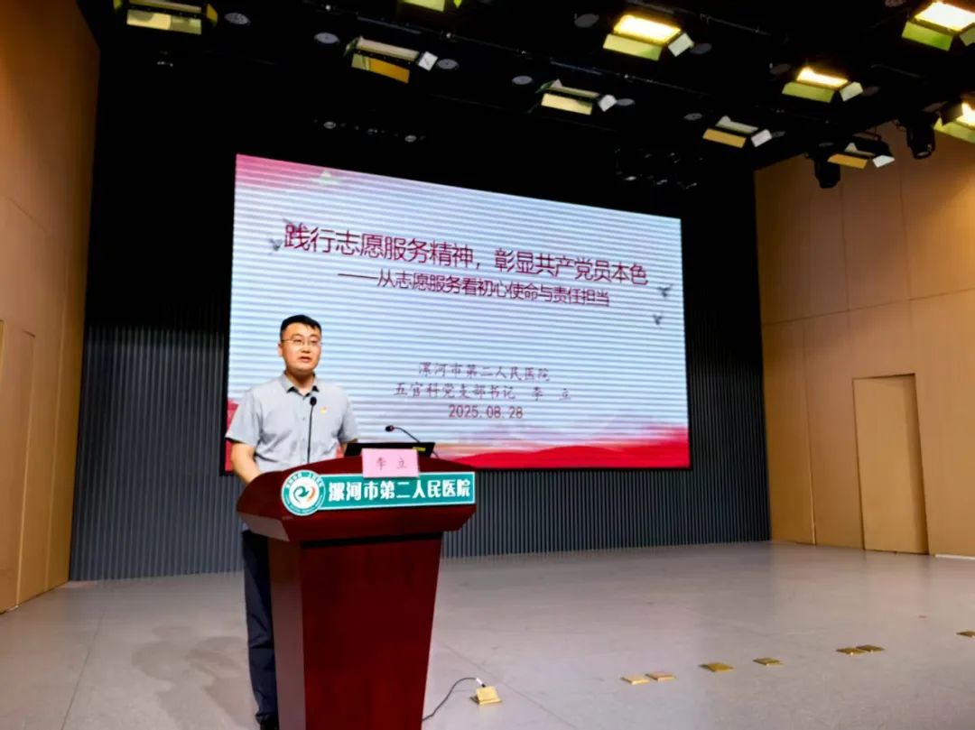 市二院五官科黨支部書記李立以《踐行志愿服務精神,彰顯共產(chǎn)黨員本色——從志愿服務看初心使命與責任擔當》為題,從志愿服務是黨員必修課、志愿服務中的黨性密碼、黨員志愿服務實踐路徑、志愿服務是黨性修養(yǎng)實踐等4個方面,結(jié)合醫(yī)院大量的志愿服務實例,講述了市二院黨委如何通過“一支部一品牌”活動的開展來發(fā)揮黨支部的戰(zhàn)斗堡壘作用和黨員的先鋒模范作用。