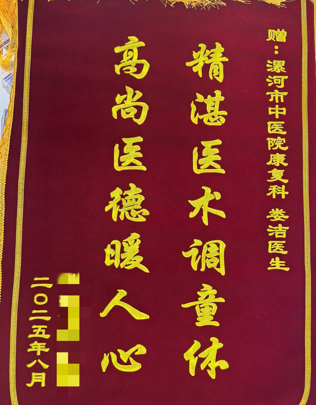 近日,漯河市中醫(yī)院兒童康復科收到患兒家屬贈送的兩面錦旗,分別寫有 “杏林飄香贊醫(yī)德,仁心仁術(shù)好醫(yī)生”“精湛醫(yī)囑調(diào)童體,高尚醫(yī)德暖人心”。家屬以此表達對婁潔醫(yī)生、王莉護士長及治療師精湛技術(shù)和優(yōu)質(zhì)服務的肯定與感謝。