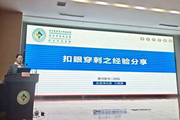 漯河醫(yī)專(zhuān)二附院血液凈化室骨干萬(wàn)真真以《扣眼穿刺之經(jīng)驗(yàn)分享》為題,結(jié)合實(shí)際案例,細(xì)致講解了扣眼穿刺技術(shù)的操作要點(diǎn)、隧道建立的技巧、日常維護(hù)的注意事項(xiàng)以及常見(jiàn)問(wèn)題,為降低患者穿刺痛苦提供了寶貴的經(jīng)驗(yàn)。由郾城區(qū)中醫(yī)院血液凈化室護(hù)士長(zhǎng)楚方圓與召陵區(qū)中醫(yī)院血液凈化室護(hù)士長(zhǎng)曹冬曉主持會(huì)議。