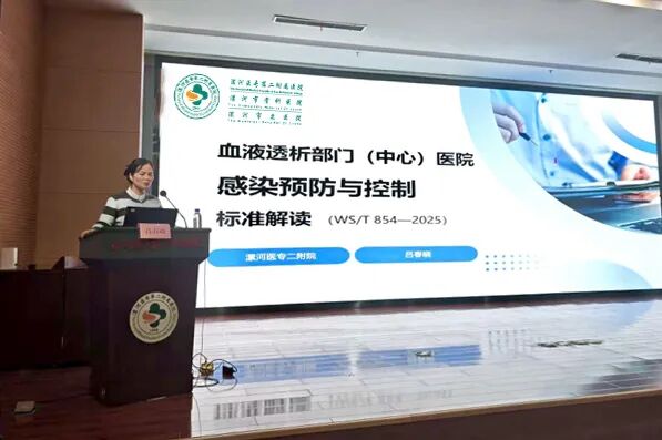規(guī)范與賦能并重,夯實(shí)安全基石。 在質(zhì)量安全層面,漯河醫(yī)專(zhuān)二附院血液凈化室護(hù)士長(zhǎng)呂春曉對(duì)《血液透析部門(mén)(中心)醫(yī)院感染預(yù)防與控制標(biāo)準(zhǔn)》進(jìn)行了權(quán)威解讀,從建筑布局、人員管理、操作流程、監(jiān)測(cè)要求等多個(gè)方面,深入講解了標(biāo)準(zhǔn)的核心要點(diǎn),為各醫(yī)療機(jī)構(gòu)落實(shí)規(guī)范化管理、確保患者安全提供了依據(jù)。由漯河市婦幼保健院血液凈化室護(hù)士長(zhǎng)劉曉靜與臨潁縣人民醫(yī)院血液凈化室護(hù)士長(zhǎng)陳曉夢(mèng)主持會(huì)議。