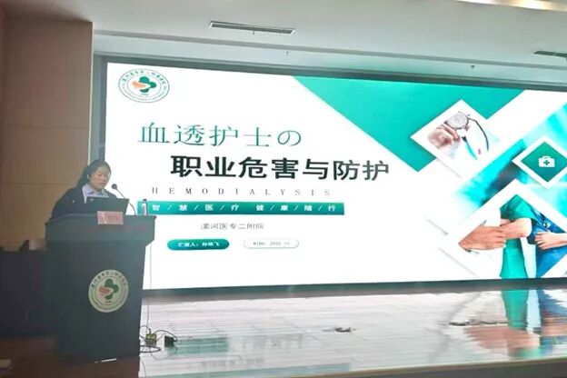 漯河醫(yī)專(zhuān)二附院血液凈化室骨干孫艷飛圍繞《血透護(hù)士的職業(yè)危害與防護(hù)》展開(kāi)講解,從各個(gè)層面系統(tǒng)梳理了血透護(hù)士面臨的職業(yè)風(fēng)險(xiǎn),并提出了具體、可行的防護(hù)措施與建議,呼吁在全力關(guān)愛(ài)患者的同時(shí),務(wù)必重視自身的職業(yè)安全與身心健康,體現(xiàn)了深刻的人文關(guān)懷精神和團(tuán)隊(duì)管理智慧。由臨潁縣中醫(yī)院血液凈化室護(hù)士長(zhǎng)陳莉與舞陽(yáng)縣中醫(yī)院血液凈化室護(hù)士長(zhǎng)張銳主持會(huì)議。