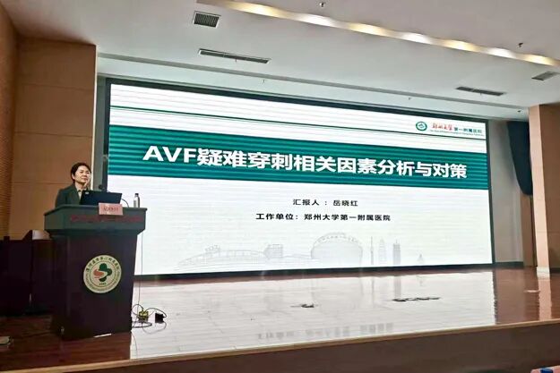 中華護(hù)理學(xué)會(huì)血液凈化專(zhuān)業(yè)委員會(huì)委員、鄭州大學(xué)第一附屬醫(yī)院血液凈化中心護(hù)士長(zhǎng)岳曉紅以《AVF疑難穿刺相關(guān)因素分析與對(duì)策》為題,從精準(zhǔn)評(píng)估、穿刺、超聲輔助、團(tuán)隊(duì)協(xié)作幾個(gè)方面,分析了動(dòng)靜脈內(nèi)瘺穿刺困難的各類(lèi)因素,分享了一系列實(shí)用、有效的解決方案。由漯河市第二人民醫(yī)院血液凈化室護(hù)士長(zhǎng)朱潔與舞陽(yáng)縣人民醫(yī)院血液凈化室護(hù)士長(zhǎng)苗保紅主持會(huì)議。