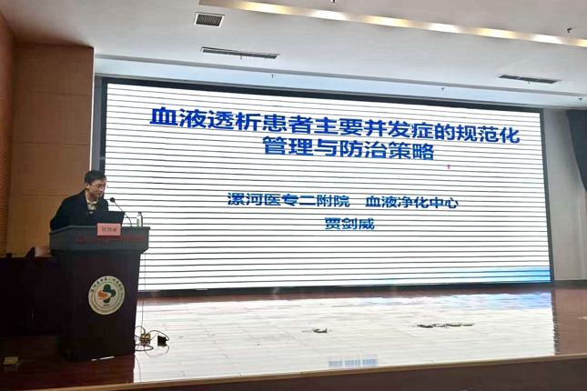 漯河醫(yī)專(zhuān)二附院賈劍威主治醫(yī)師以《血液透析患者主要并發(fā)癥的規(guī)范化管理與防控策略》為題。圍繞常見(jiàn)并發(fā)癥的發(fā)生機(jī)制、風(fēng)險(xiǎn)評(píng)估到綜合防治策略,強(qiáng)調(diào)實(shí)施個(gè)體化、全程化管理的重要性和全面提升患者長(zhǎng)期生活質(zhì)量的醫(yī)療目標(biāo)。由漯河市中醫(yī)院血液凈化室護(hù)士長(zhǎng)鄭曉玲與舞陽(yáng)縣中心醫(yī)院血液凈化室護(hù)士長(zhǎng)徐彩霞主持會(huì)議。