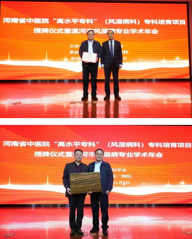 會(huì)上,王齊超院長(zhǎng)代表漯河醫(yī)專二附院為孟慶良教授頒發(fā)特聘專家聘書。孟慶良教授代表河南省中醫(yī)院為漯河醫(yī)專二附院“高水平???rdquo;(風(fēng)濕病科)??婆嘤?xiàng)目授牌。此次授牌搭建起河南省中醫(yī)院與漯河醫(yī)專二附院的??乒步蛄?,不僅將推動(dòng)漯河地區(qū)風(fēng)濕病??频捏w系化發(fā)展,更有望通過中西醫(yī)結(jié)合診療模式的深化,為我市風(fēng)濕病患者帶來更優(yōu)質(zhì)、便捷的醫(yī)療資源。