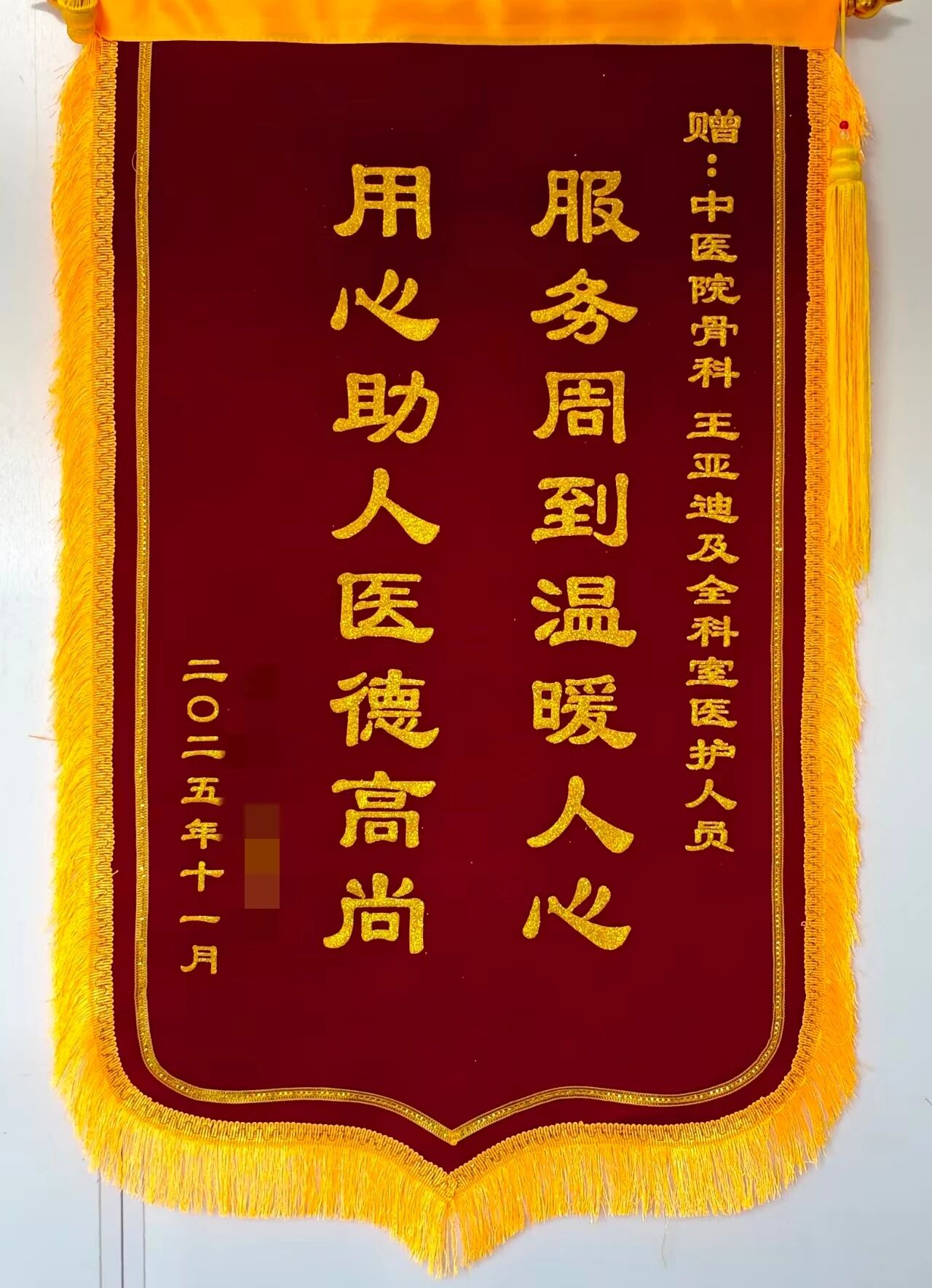 “你們不僅醫(yī)術(shù)高超,還特別有耐心,讓我感受到了家人般的溫暖。” 送錦旗時,黃女士反復(fù)說著感謝。面對贊譽(yù),主管醫(yī)生王亞迪笑著回應(yīng):“這是我們醫(yī)務(wù)人員應(yīng)該做的,看到患者康復(fù),就是我們最大的心愿。” 一面錦旗,不僅是患者對醫(yī)護(hù)團(tuán)隊的認(rèn)可,更是醫(yī)患之間濃濃真情的見證。(骨 科 王亞迪)