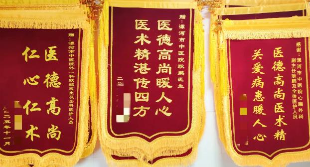 近日,漯河市中醫(yī)院外一科副主任耿鵬的診室里暖意融融,一周之內(nèi),三面飽含深情的錦旗相繼送達,“醫(yī)德高尚 仁心仁術(shù)”“大醫(yī)精誠德醫(yī)雙馨 仁心仁術(shù)情暖人心”等燙金大字,不僅見證著患者的康復(fù)喜悅,更鐫刻著一位醫(yī)者對職業(yè)的敬畏與堅守。