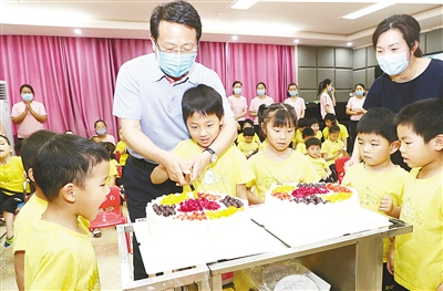 暖暖的祝福,別樣的節(jié)日。市兒童福利院,孩子們精心制作的美工作品把大廳裝扮得格外美麗,蒿慧杰認(rèn)真觀看美工作品,并聽取工作人員關(guān)于疫情期間孩子們學(xué)習(xí)生活情況的介紹。走進(jìn)音樂教室,蒿慧杰一邊親切地問候孩子們,一邊送上節(jié)日禮物。孩子們十分開心,高興地表演起朗誦和古箏節(jié)目《三字經(jīng)》,臉上洋溢著幸福的笑容。隨后,蒿慧杰和孩子們一起分享蛋糕,并合影留念。蒿慧杰叮囑有關(guān)負(fù)責(zé)同志,要用心用情做好疫情防控常態(tài)化條件下兒童福利院的各項工作,讓孩子們健康快樂成長。