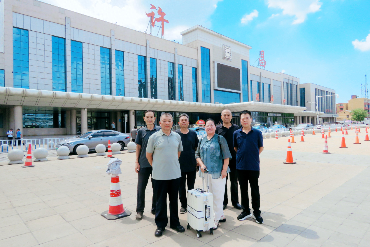 圖為2025年7月29日下午2點30分,湖南省永州市道縣退休女教師\愛心人士施羿與戰(zhàn)友們在許昌市火車站合影留念。