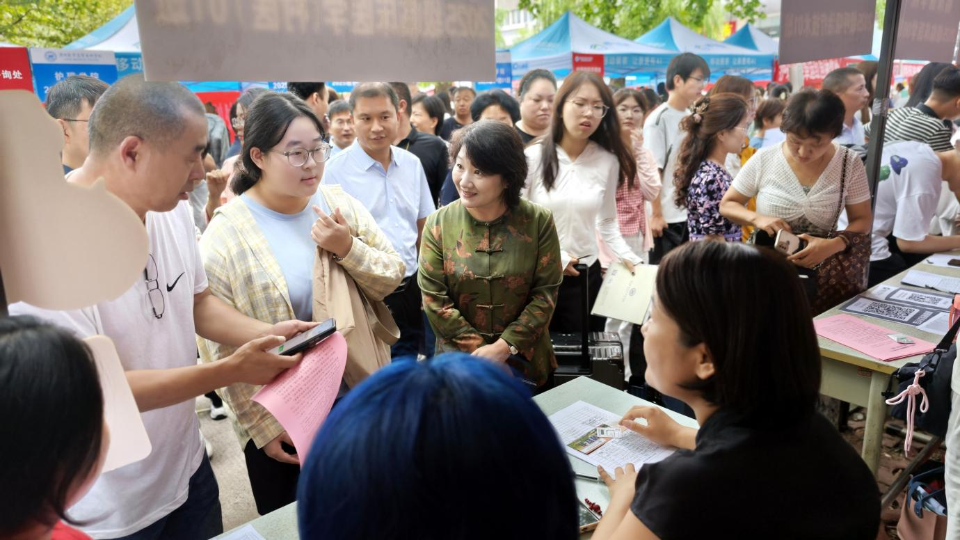 在源匯校區(qū),張祎捷首站來(lái)到校內(nèi)接站點(diǎn),與剛抵達(dá)的新生與家長(zhǎng)親切交流,詳細(xì)詢問(wèn)行程是否順利、行李是否齊全。并查看校園周邊交通疏導(dǎo)、車輛停靠等情況,叮囑工作人員做好細(xì)節(jié)服務(wù),確保迎新期間校園周邊秩序井然。
