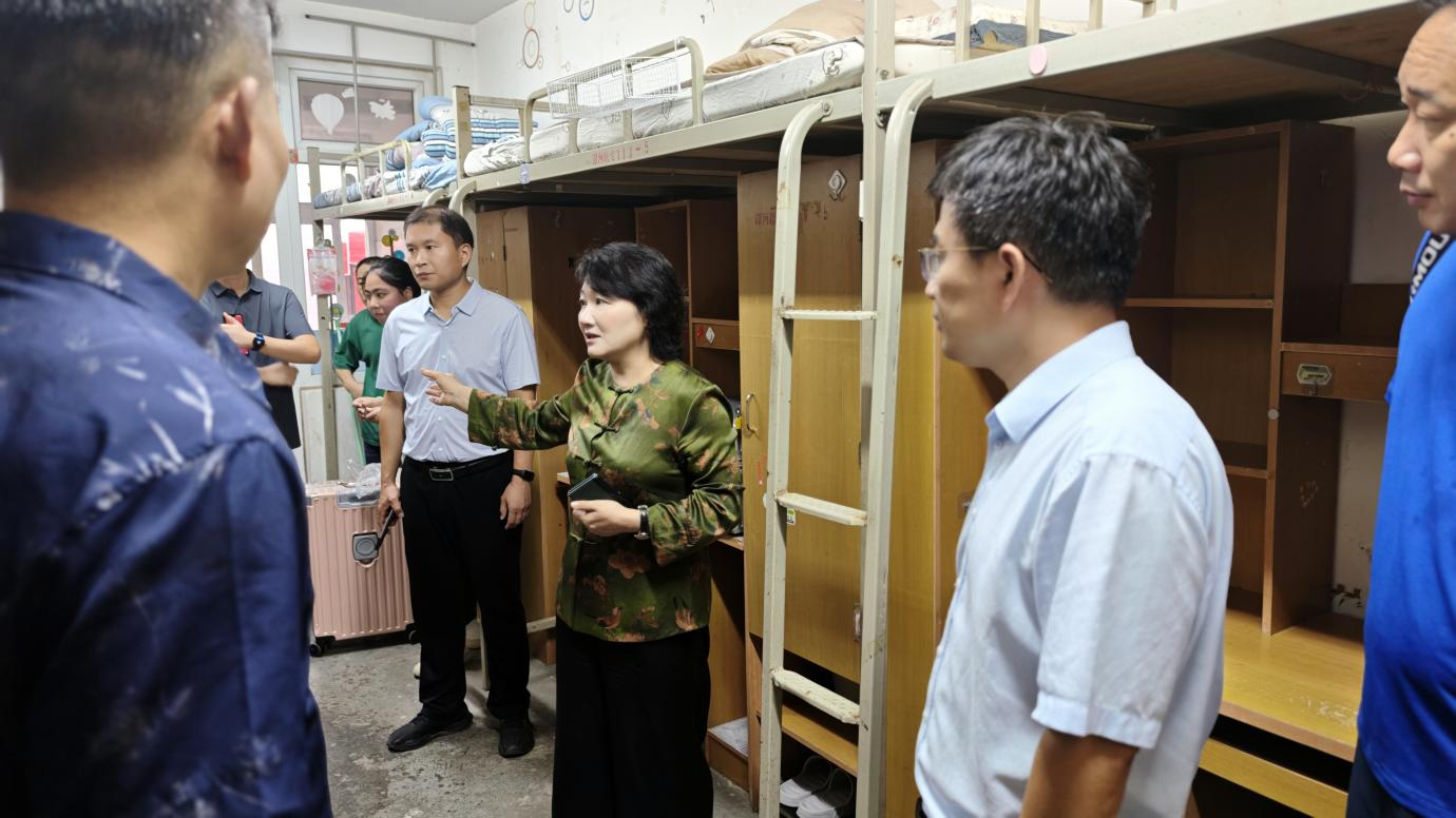 隨后,張祎捷一行走訪了源匯校區(qū)臨床醫(yī)學(xué)院、口腔醫(yī)學(xué)院、護(hù)理學(xué)院、藥學(xué)院、中醫(yī)學(xué)院、醫(yī)技學(xué)院迎新點(diǎn),詳細(xì)了解報(bào)到情況,仔細(xì)詢問(wèn)新生報(bào)到流程,注冊(cè)進(jìn)度和志愿服務(wù)安排。每到一處,她都與新生、家長(zhǎng)及工作人員深入交流。在學(xué)生宿舍區(qū),她重點(diǎn)查看了生活服務(wù)保障措施,認(rèn)真傾聽(tīng)學(xué)生初入校園的感受,鼓勵(lì)他們積極適應(yīng)新環(huán)境、融入大集體,盡快以飽滿的狀態(tài)投入大學(xué)生活,并感謝家長(zhǎng)對(duì)學(xué)校的信任與托付。此外,張祎捷一行還前往校區(qū)食堂、超市、志愿服務(wù)點(diǎn),檢查餐飲衛(wèi)生、商品供應(yīng)、志愿服務(wù)等情況,確保新生在校生活需求得到全方位保障。