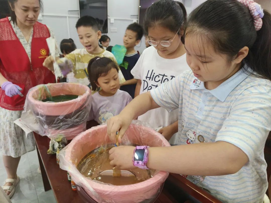 在非遺漆扇制作環(huán)節(jié),小朋友們在工作人員的耐心指導下,親手體驗漆扇制作。大家充分發(fā)揮想象力,繪制出色彩斑斕的扇面,完成了屬于自己的特色漆扇作品,在鍛煉動手能力的同時,進一步領(lǐng)略了非遺文化的獨特魅力。