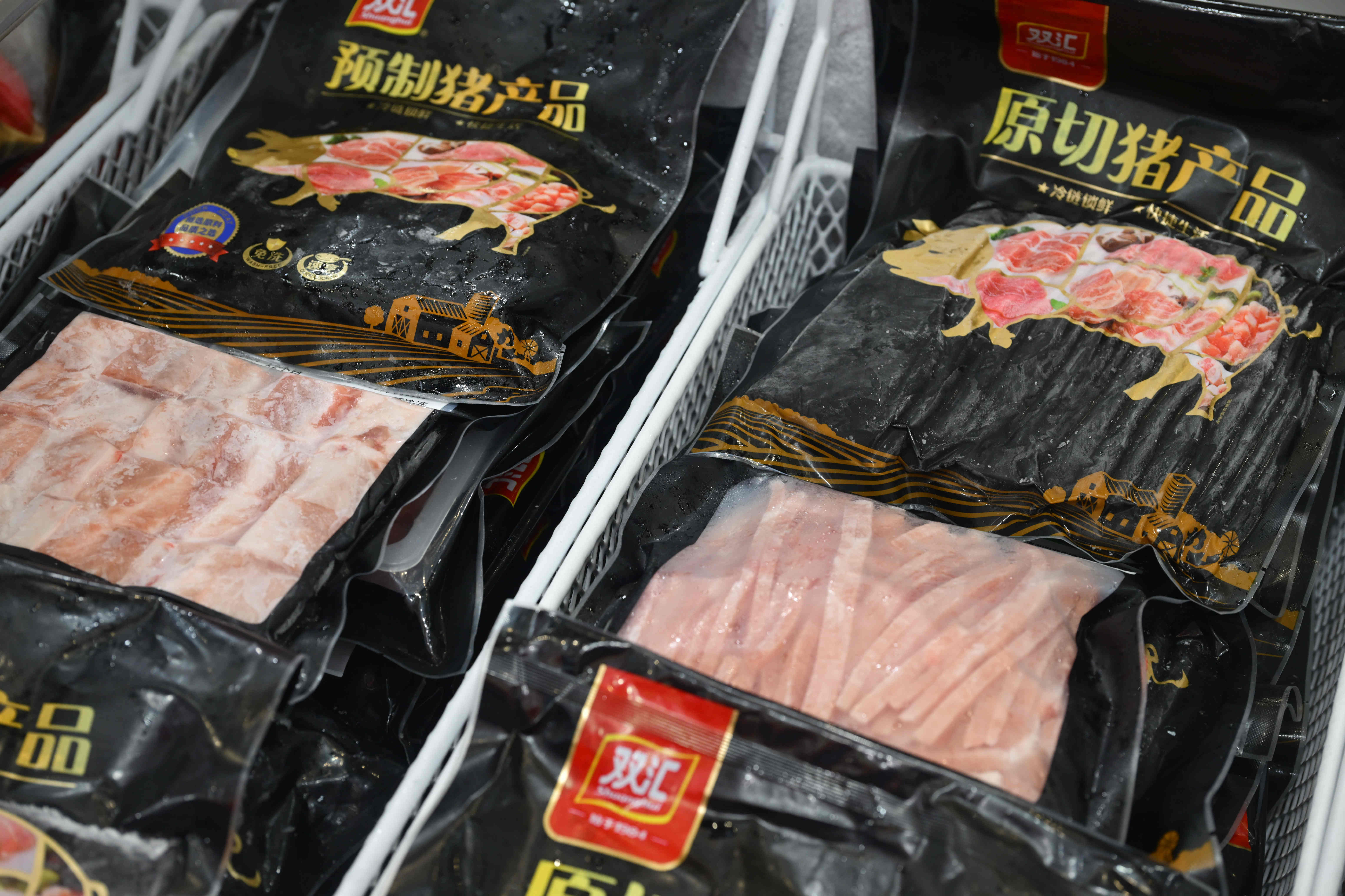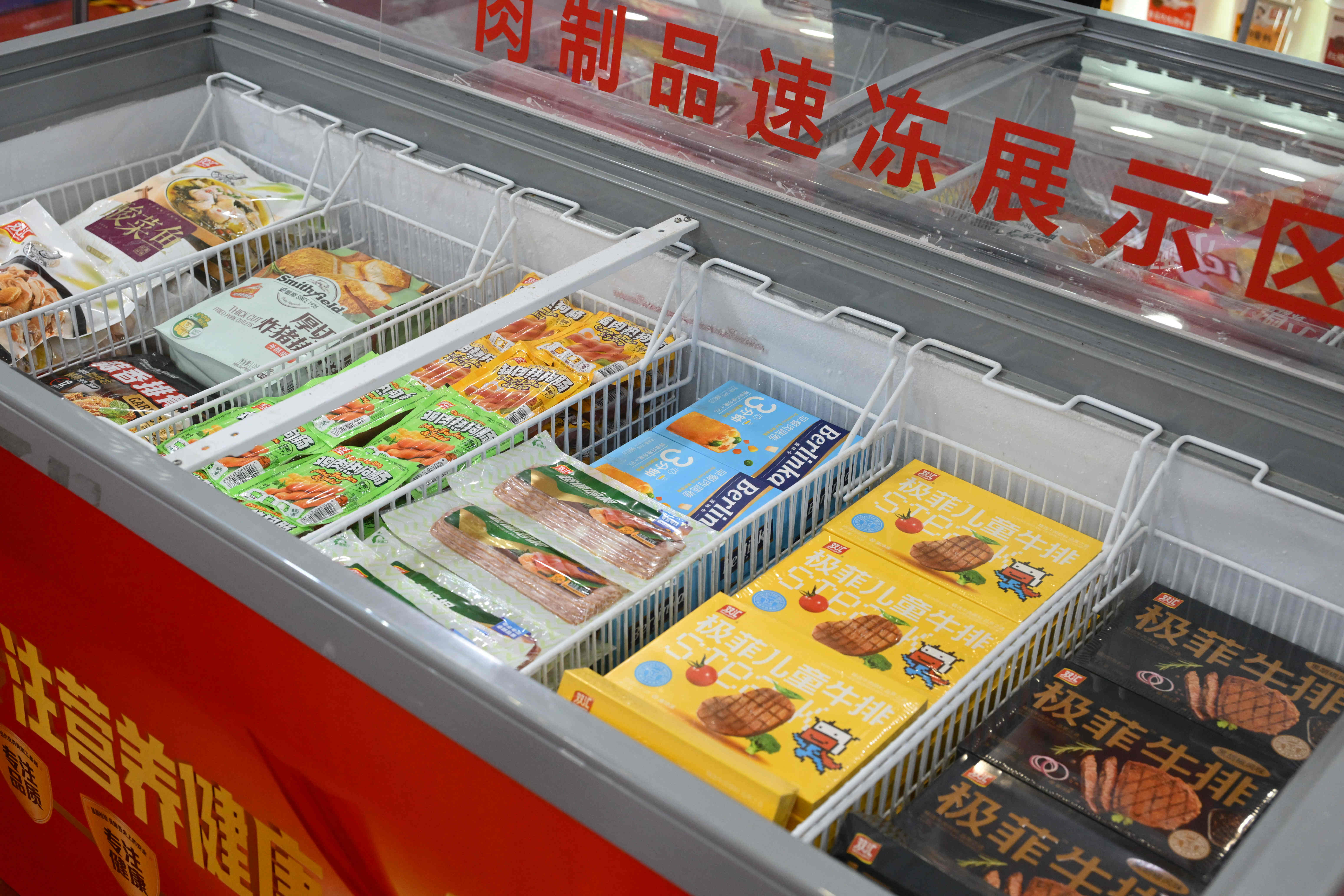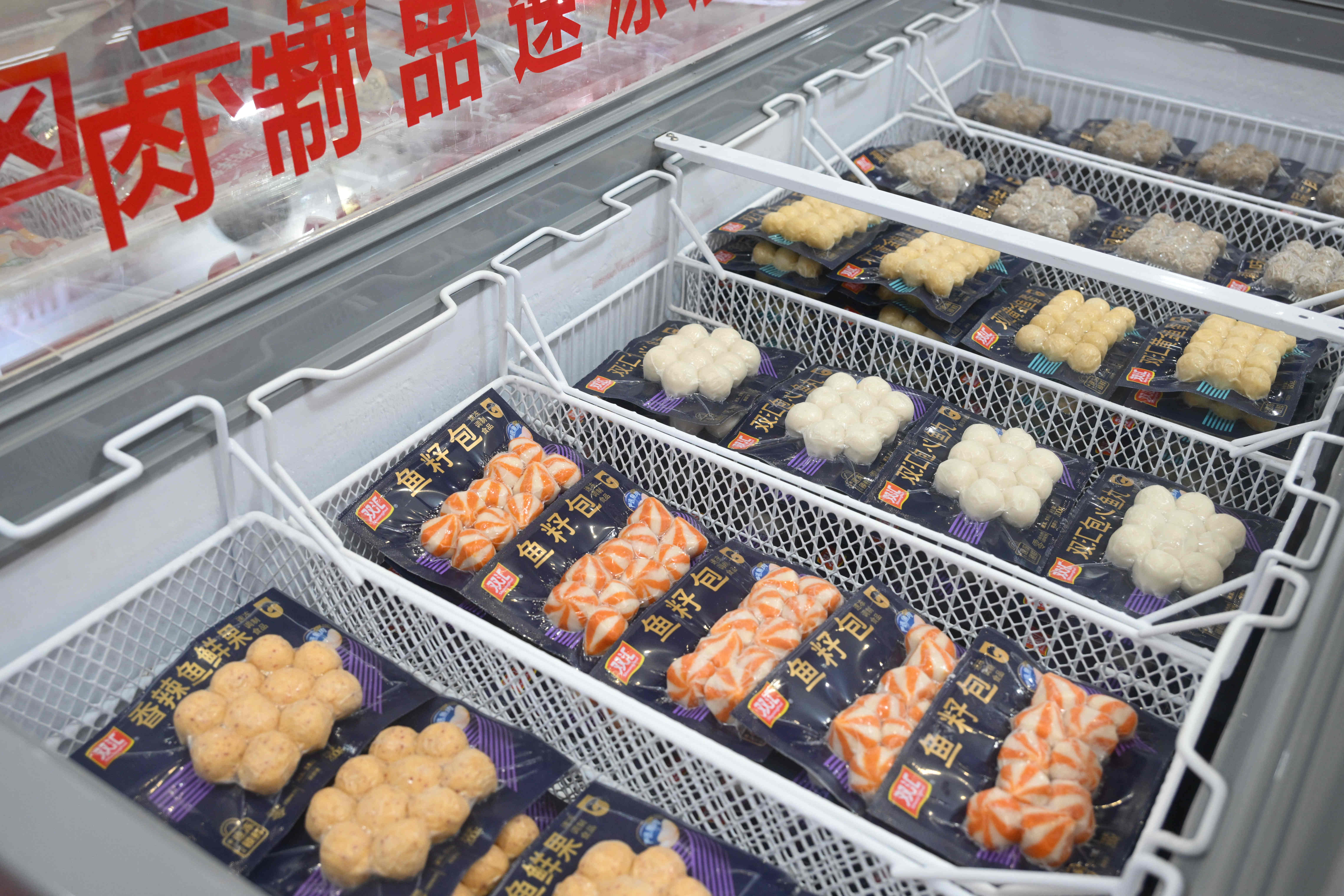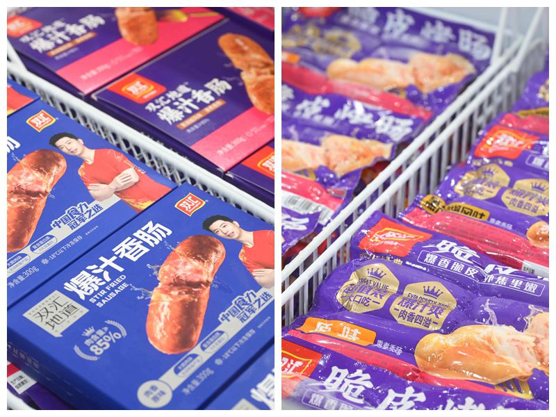 展柜內(nèi),Berlinka早餐肉蔬卷、極菲牛排、超值培根、炸豬排、亞麻籽雞肉餅、熱狗腸等特色產(chǎn)品,蒜香排骨、醬香肥腸、酸菜魚(yú)、豬肚雞等菜肴系列,香煎雞排、香酥雞塊、奧爾良風(fēng)味雞翅中、雞肉洋蔥圈等調(diào)理雞產(chǎn)品,丸子、肉卷、小酥肉、親親腸、芝士脆皮腸等火鍋食材,也充分展現(xiàn)了雙匯在產(chǎn)品創(chuàng)新方面的全新探索。
