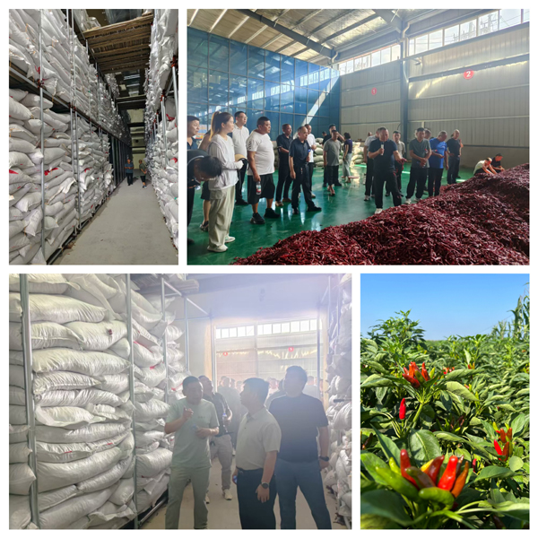 第一站實地參觀“子彈頭”、“三櫻椒”品種辣椒的生長情況,學習“麥椒套種”種植技巧,詢問專家種植模式、病蟲害防治和畝產(chǎn)情況。王崗鎮(zhèn)技術(shù)人員毫無保留地分享了田間管理的關(guān)鍵細節(jié)與多年積累的實用經(jīng)驗,通過細致觀摩和現(xiàn)場講解,系統(tǒng)了解了這一高效種植模式的核心環(huán)節(jié)——從精準選種、科學播種、病蟲防治到高效收獲、專業(yè)存儲及暢通銷售的全鏈條操作流程。第二站實地參觀了王崗鎮(zhèn)辣椒儲存專用冷庫,通過查看冷庫建設分區(qū)和分揀情況,詳細了解辣椒打包存儲技巧和市場托管銷售等關(guān)鍵環(huán)節(jié),為種植大戶安心發(fā)展種植注入“強心劑”。