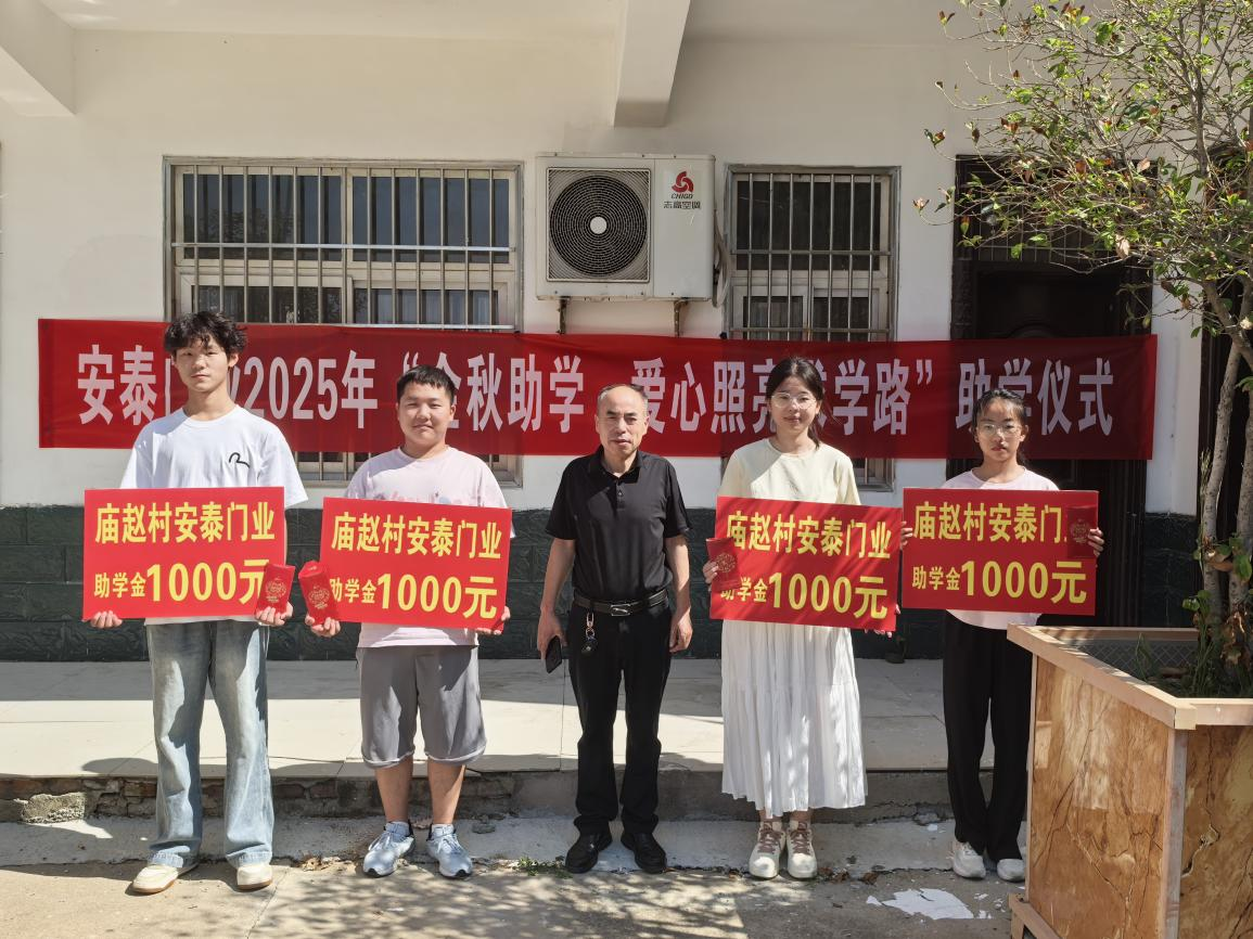 2025年8月22日上午,龍城鎮(zhèn)廟趙村洋溢著溫暖與希望的氛圍,愛心企業(yè)安泰門業(yè)2025年“金秋助學·愛心照亮求學路”助學儀式在這里隆重舉行,為村內4名即將踏入大學校門的優(yōu)秀學子送去每人1000元助學金,以實際行動履行企業(yè)社會責任,鼓勵村里的優(yōu)秀學子努力奮進,幫助他們更好地開啟大學生活。