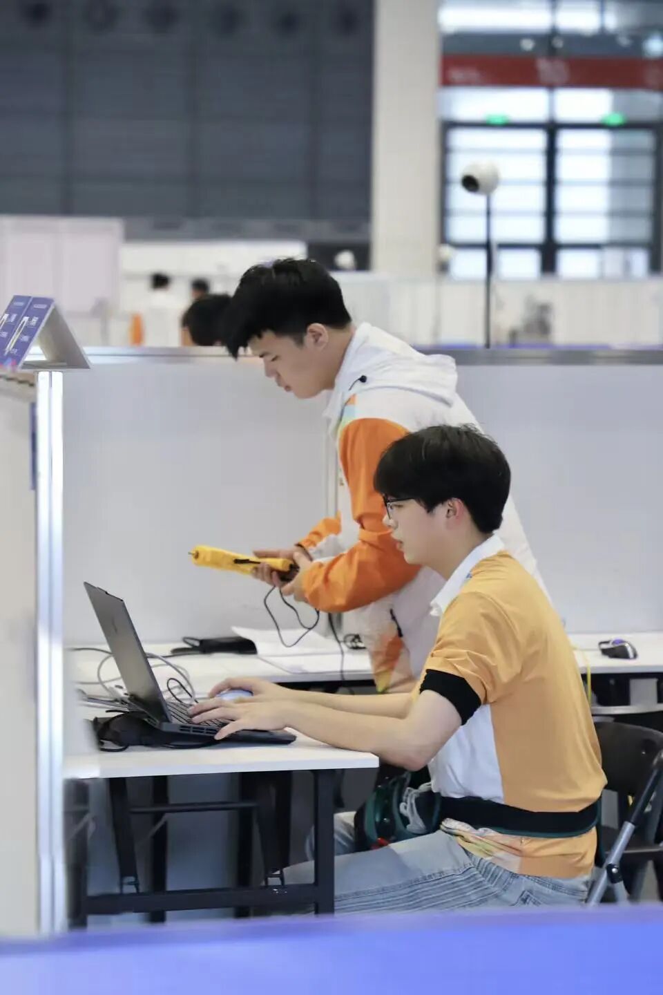中華人民共和國第三屆職業(yè)技能大賽閉幕式上,漯河技師學(xué)院青年教師、第46屆世界技能大賽自主移動機(jī)器人項(xiàng)目金牌獲得者侯坤鵬、唐高遠(yuǎn)受邀擔(dān)任頒獎嘉賓,為國賽獲獎選手頒獎。