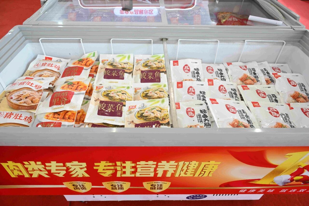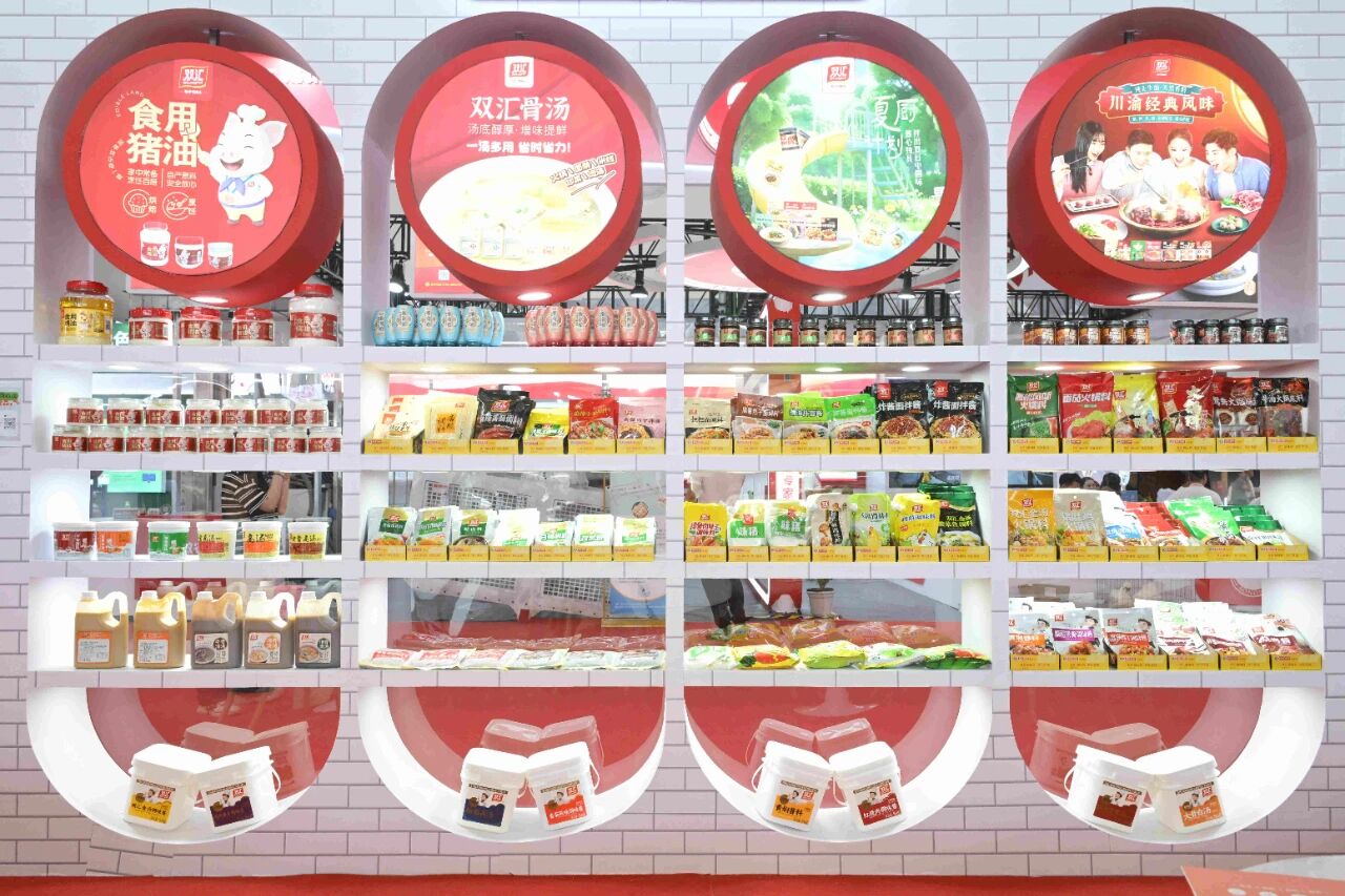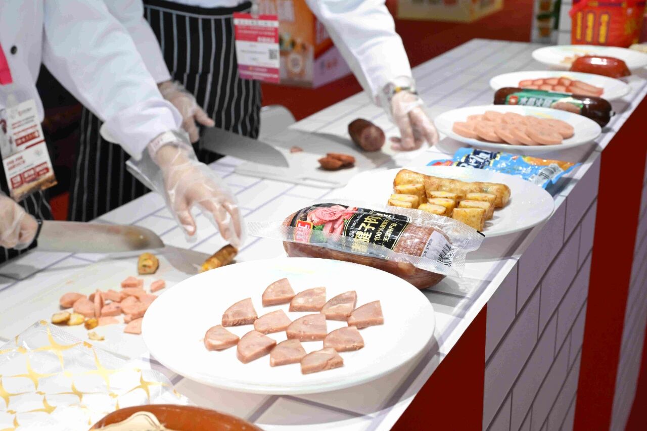 雙匯展廳內(nèi)的展品琳瑯滿目、品類豐富,我們可以看到企業(yè)對肉類美食的探索,早已從“一支火腿腸”拓展出更多可能。僅肉制品就涵蓋了簡頌午餐肉、金沙蛋黃腸、豬腱子肉火腿、富樂鹵味腸等特色產(chǎn)品系列,焦香蜜汁腸、塞納諾火腿、山核桃木煙熏原切培根、薩納齊瓊香腸等史蜜斯系列,玉米肉棗腸、脆骨肉條香腸、火爆小郡肝等匯小鋪零食系列,鹵福齋中式產(chǎn)品禮盒系列,招牌面、香菇雞丁米線、酸辣粉等方便速食系列。