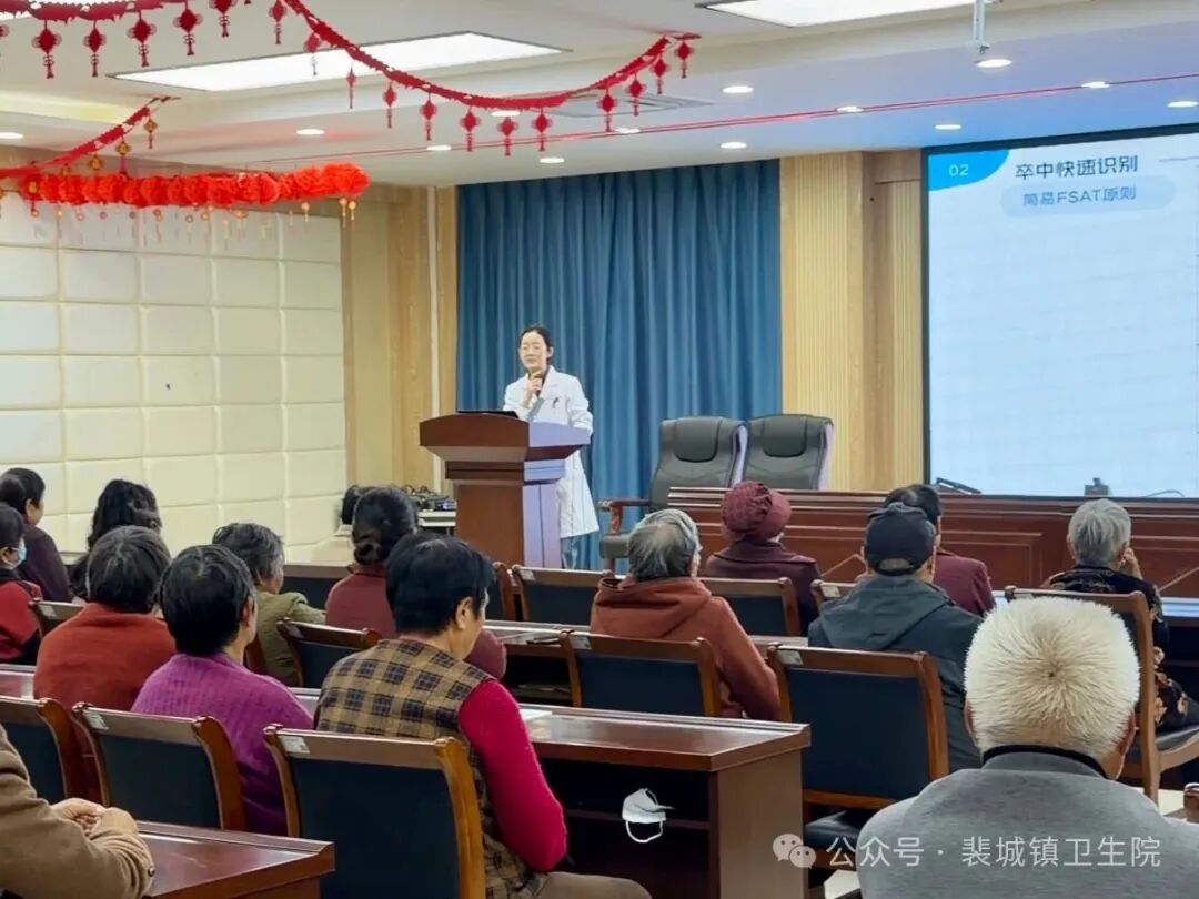 為了提高轄區(qū)內(nèi)老年人對腦卒中的認識和預(yù)防能力,增強健康管理意識與自我防護能力。2025年10月16日下午,裴城鎮(zhèn)衛(wèi)生院組織科普宣講團開展世界卒中日健康教育知識講座活動。