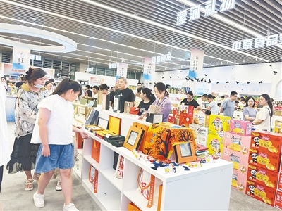 市民在中國食品名城品牌館內(nèi)選購商品。