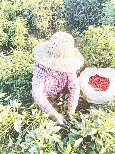 辣椒種植基地不僅讓該村村民增收,還為附近村莊的村民提供了在“家門口”就業(yè)的機會。從土地平整、栽秧到如今的采摘分揀,西軍王村及附近村莊的40多名村民在基地務(wù)工。“摘1公斤辣椒掙1塊錢。俺一天能摘70公斤,照顧老人和賺錢兩不誤。”正在摘辣椒的村民張秀琴高興地說。