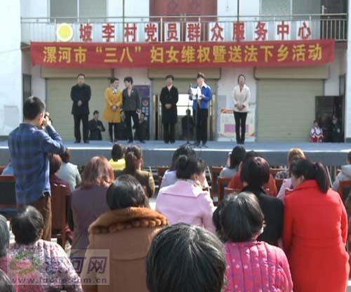 在國際“三八”婦女節(jié)來臨之際,為更好的提高婦女同胞的法律維權(quán)意識,漯河市婦聯(lián)在召陵區(qū)坡李村舉辦婦女維權(quán)暨送法下鄉(xiāng)活動,將法律送至農(nóng)村婦女身邊。